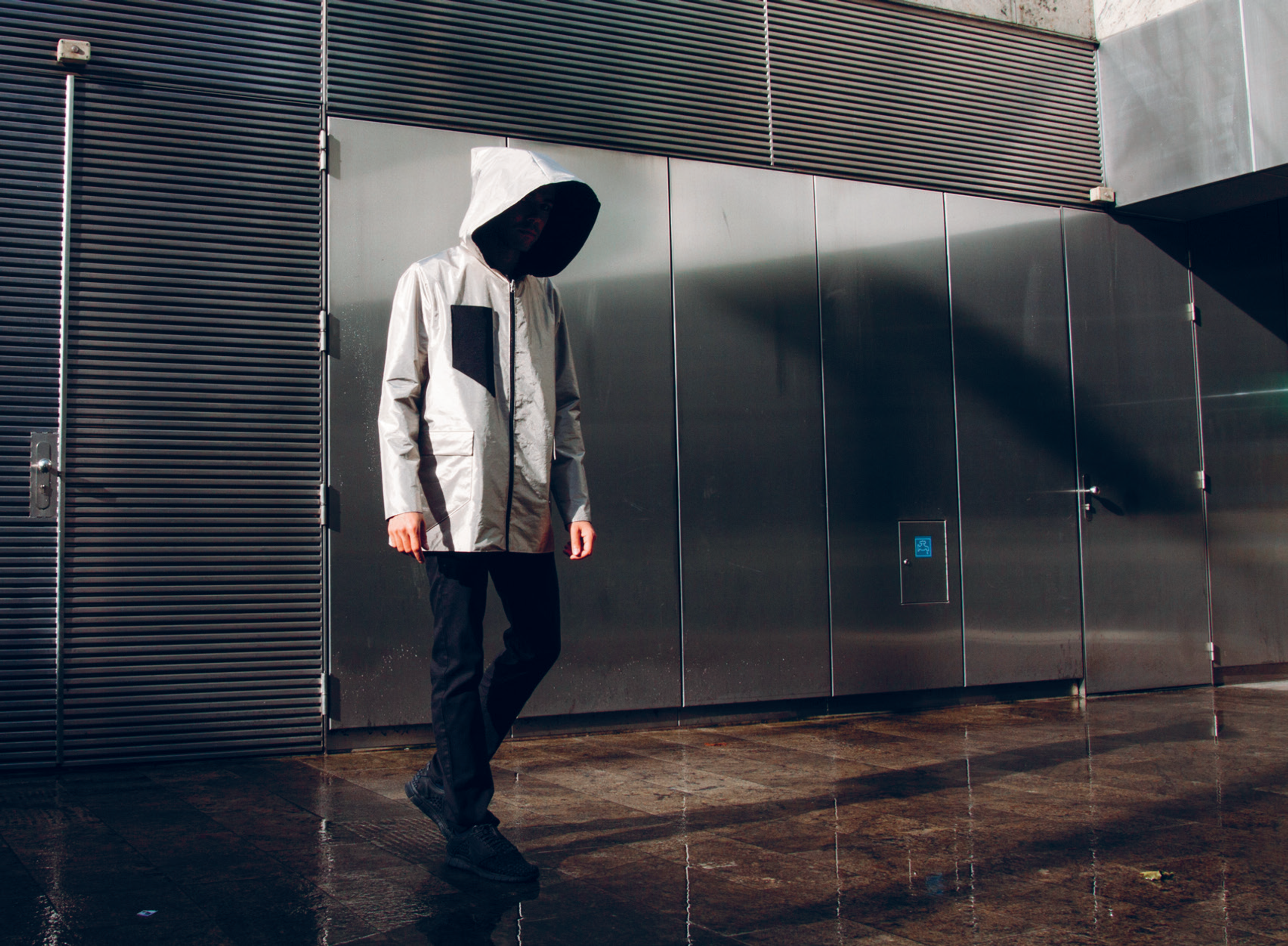 It has become impossible to control which information about us is revealed and what stays hidden. We are not in control of our own privacy anymore. And privacy is what makes us human. Clothing has always been a method to protect ourselves against the possible threats of the biosphere, like the cold or extreme heat. Project KOVR is protecting you from the infosphere. It does so by using metalliferous fabrics that shield the computer chips in your cards, clothing and car keys; even making your phone untraceable. It blocks every incoming and outgoing signal, keeping you safe from radio waves and radiation. Project KOVR believes in being able to choose when to be traceable. In people regaining control over their privacy and data. So when preferred, the black pockets allow you to still be reachable with your device of choice.