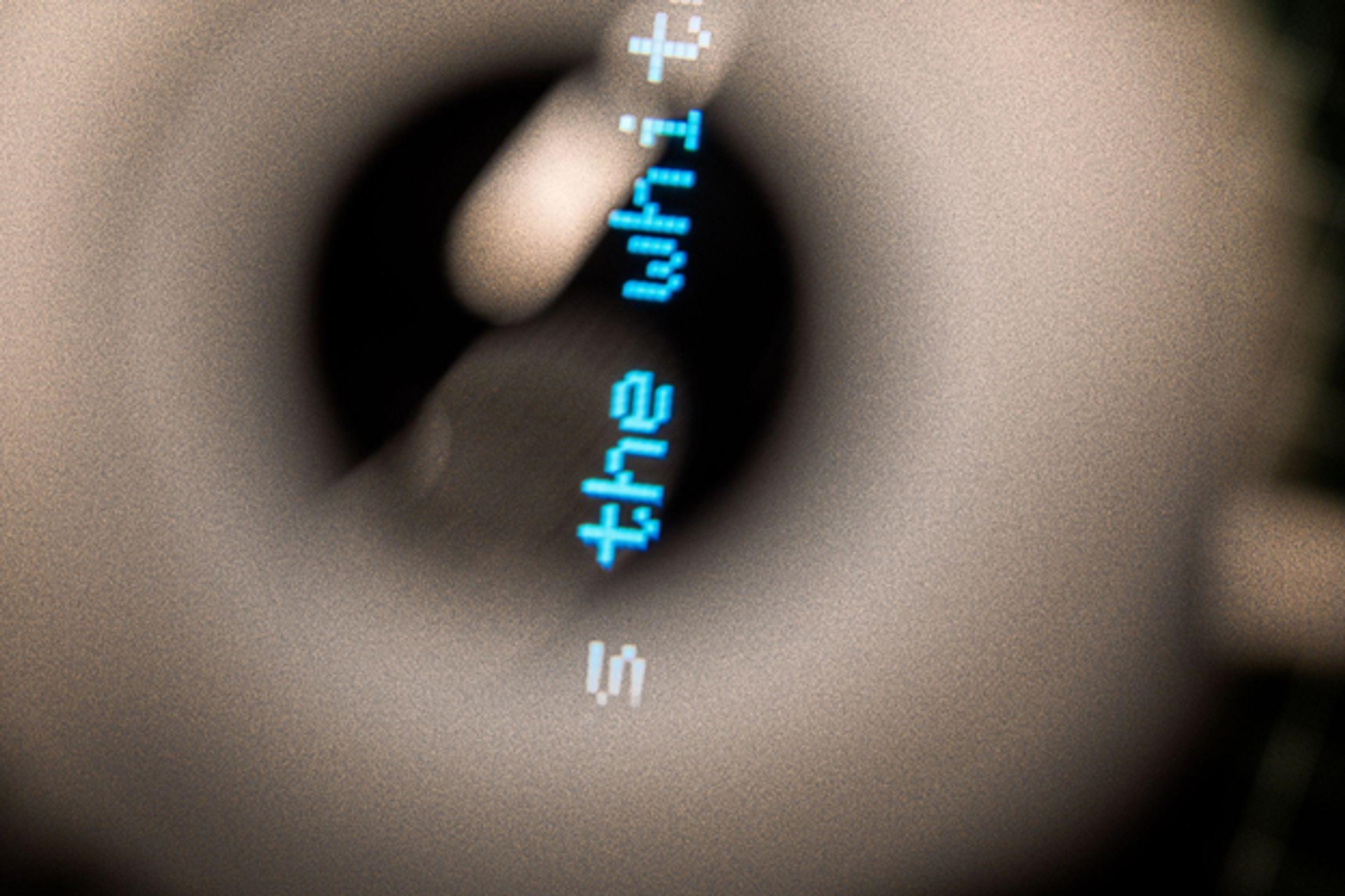 The device does not speak them aloud. Instead, its “thoughts” scroll across a tiny screen buried within its body. To read them, one must peer through a pupil-like aperture. The lens slightly distorts the text. Words appear gradually in a stream, as if peering into a stream of thinking inside the machine. You might begin reading halfway through a sentence, or look away before it ends.